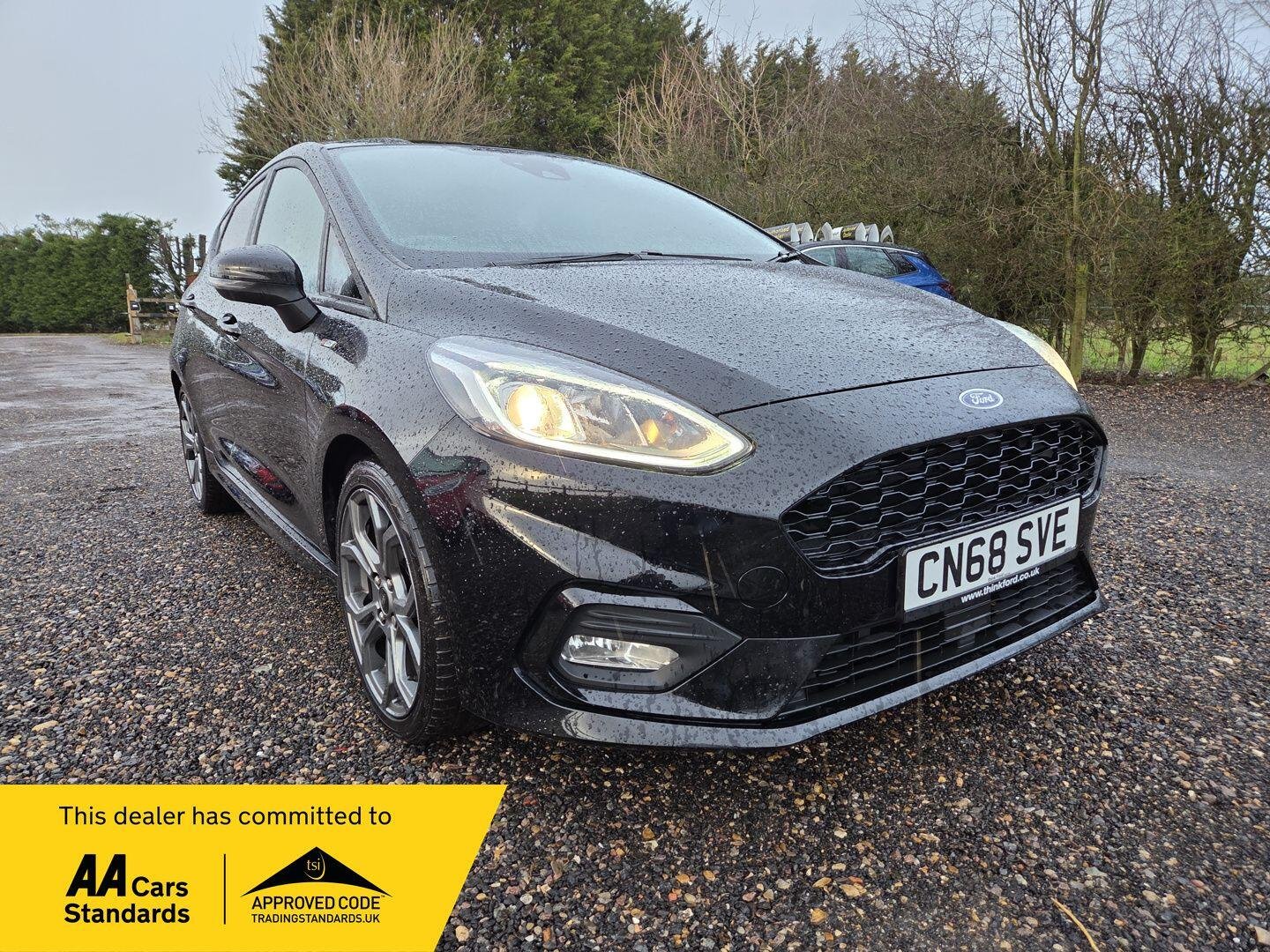 Enjoy peace of mind with this 2018 Ford Fiesta, boasting a clear vehicle history check and an MOT valid until January 2027. This T ST Line model is powered by an efficient 1.0L petrol engine, meeting Euro 6 emissions standards. Inside, you'll find manual air conditioning for your comfort, and automatic headlights that switch on and off as needed. Stay connected and entertained with Ford SYNC, featuring a touchscreen, DAB radio, and seamless integration with Apple CarPlay and Android Auto, alongside Bluetooth connectivity. The NCAP Pack further enhances safety.